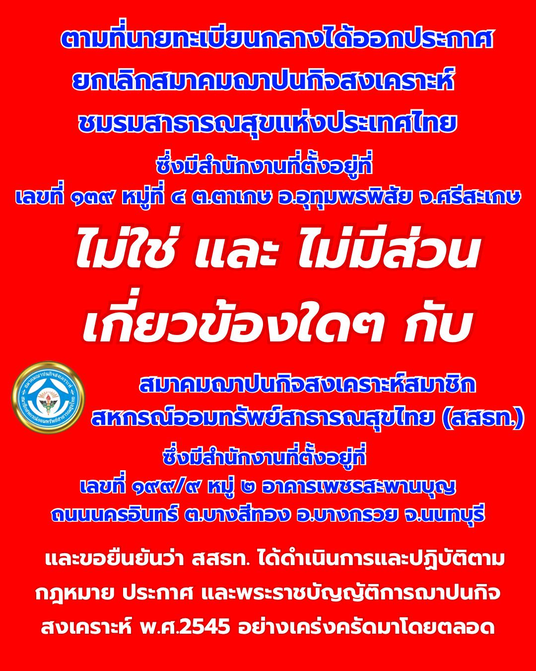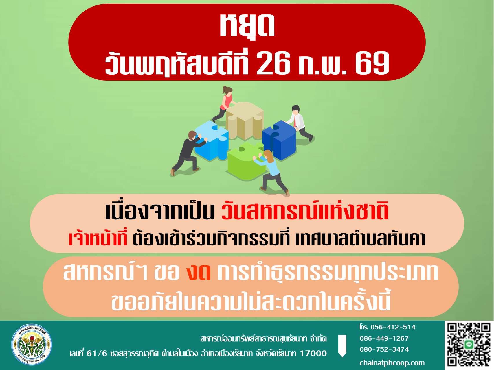 ประกาศ สหกรณ์ออมทรัพย์สาธารณสุขชัยนาท จำกัด เรื่อง ปิดธุรกรรมทางการเงินของสหกรณ์ออมทรัพย์สาธารณสุขชัยนาท จำกัด กุมภาพันธ์ 10, 2026admincoopข่าวสารกิจกรรม อ่านต่อ...