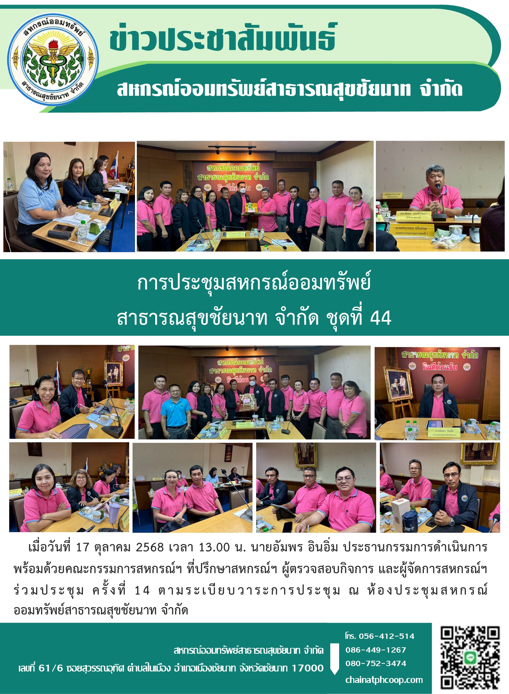 การประชุมสหกรณ์ออมทรัพย์สาธารณสุข จำกัด ชุดที่ 44 ตุลาคม 22, 2025admincoopข่าวประชาสัมพันธ์ FacebookTwitterGoogle PlusLine