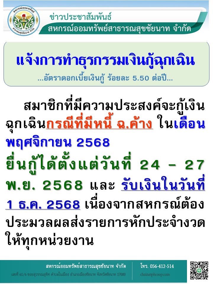 แจ้งการทำธุรกรรมเงินกู้ฉุกเฉิน พฤศจิกายน 24, 2025พฤศจิกายน 24, 2025admincoopข่าวสารกิจกรรม FacebookTwitterGoogle PlusLine