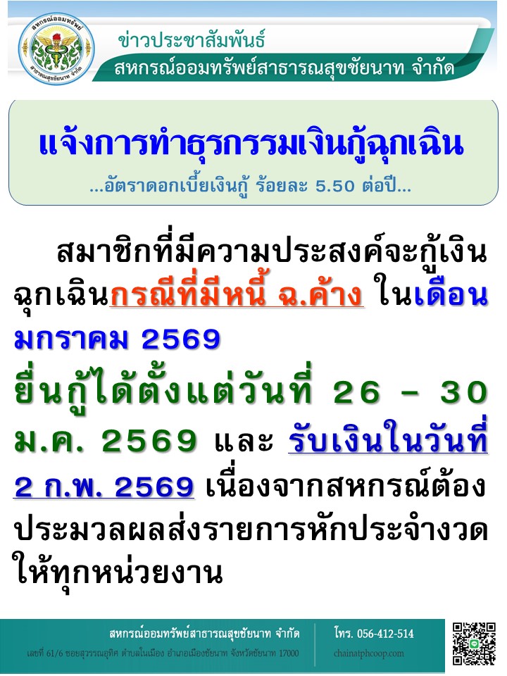 แจ้งการทำธุรกรรมเงินกู้ฉุกเฉิน