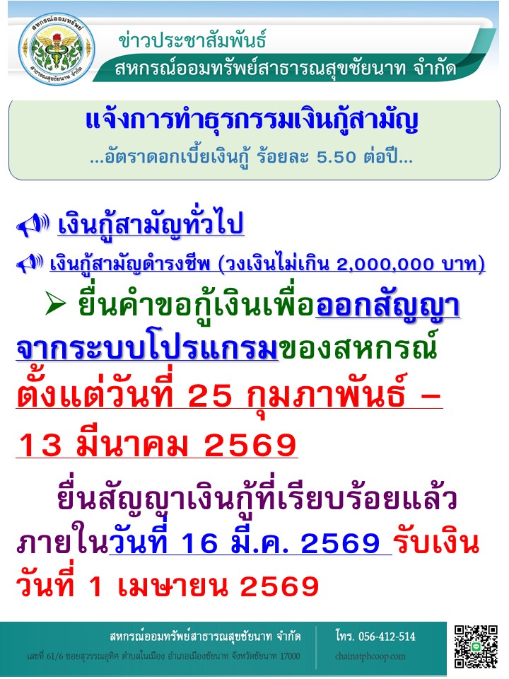 แจ้งการทำธุรกรรมเงินกู้สามัญ กุมภาพันธ์ 25, 2026มีนาคม 2, 2026admincoopข่าวสารกิจกรรม FacebookTwitterGoogle PlusLine